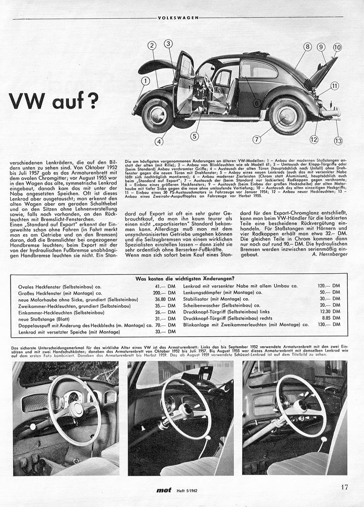 Und hier also eine kleine Auswahl von Artikeln zum Thema VW, wobei hier nicht nur der Käfer angesprochen ist. Lasst Euch überraschen. Und wer ähnlich interessante Artikel findet, kann Sie gerne hier veröffentlichen. Schreibt einfach eine Mail.